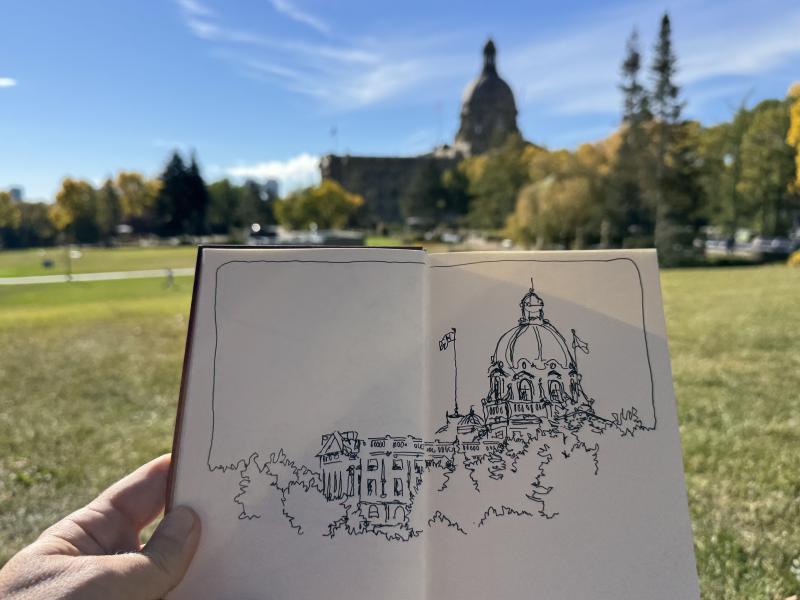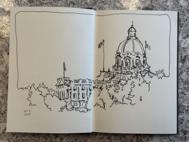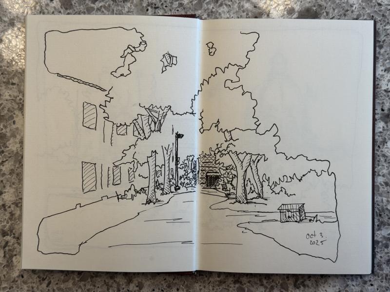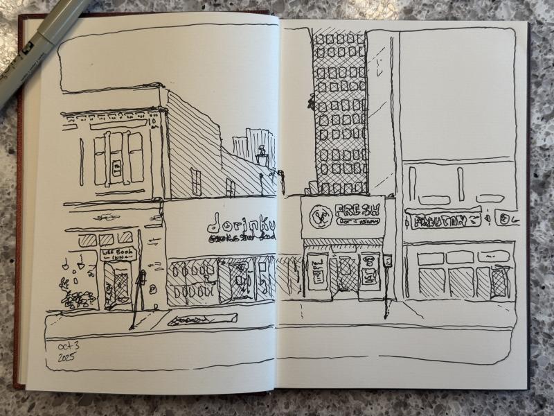 I went for a stroll #downtown via the #university with the goal of making some art. Success! Three new sketches.