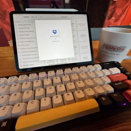 The Kid booked the makerspace at the library for a couple of hours so that she and her friends could try recording their podcast there, so as a resultI—the responsible, waver-signing adult—needs to hang around and kill a couple hours #writing and having some tlc with my #keyboard. Oddly, a bustling library on a Sunday afternoon is less ideal for my creative efforts than I would have imagined.