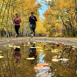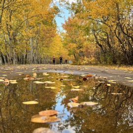 The autumn colours were in full force this week, and it’s only a matter of days before the snow falls. Enjoy this rare view of a sunny orange run thru the Edmonton suburbs