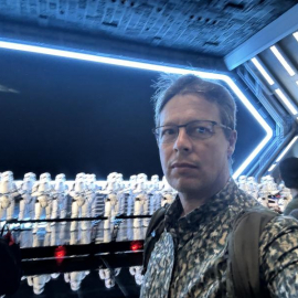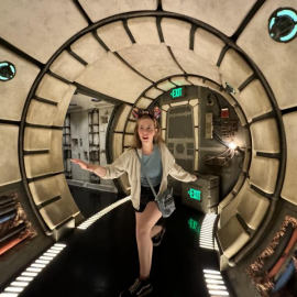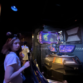 8r4d#disney2024#starwars We logged into another trip on Smugglers Run, the premise being that six people get tossed into a motion simulator version of a borrowed Millennium Falcon to do a cargo run. Each person is assigned a role. The Kid and I were pilots. Karin was a gunner. And the family (including a grandmother and her two very young grandkids behind us who may have just gotten lost and wandered into the ride looking for a bathroom) were the other gunner and the engineers. Needless to say we scored about 30% on the game as the kids howled in confusion behind us, but it was a good time.