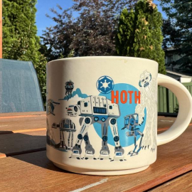 We started collecting those Starbucks #coffee mugs with the stylized art and locations on them a while ago, and they have turned into quite a collection, so much so that we’ve kinda sworn off buying any more. That is also a good thing because they changed up the style in North America and they are hard to find. Sure, the new Disney series doesn’t perfectly match the style of the rest of our collection, but I couldn’t help adding just one more #starwars limited edition to my set. And who says I haven’t been to Hoth anyways?