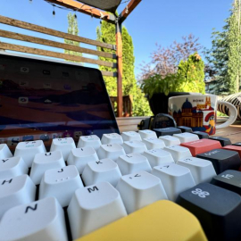 A couple weeks in and I’ve written about ten thousand words on the new #keyboard in a variety of settings: home, cafe, backyard and on my lap. I thought the colourful lights were a bit of a gimmick and sure, it mostly is, but I do get a bit of a kick out of writing at night which is about the only time they are bright enough to notice.