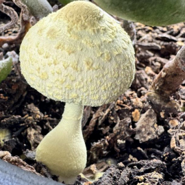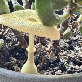 Wasn’t I surprised when I found this little mushroom sprouted in one of my jade plants this afternoon. As best as I can figure it’s a Flowerpot Parasol (Leucocoprinus birnbaumii) common in #houseplants when conditions are right. For now it’s a curiosity, but I’ll need to keep my eye on it. And no, it’s not edible.