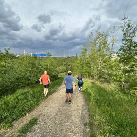 Day 27 of my May #running streak and I opted to head down to the #rivervalley to get some sunshine trails in. Back on Friday I ran up by the drop off… well the drop off overlooks this particular park span between the two footbridges, or where I was down running this evening. My 3k route (x2 out and back) made for a 6k run and an encounter with about a hundred people out walking, biking, running, or riding one wheeled motorized unicycles.