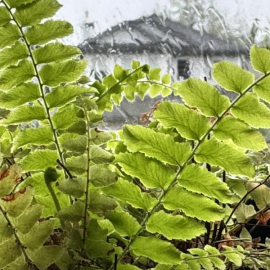 The fern has definitely taken a turn for the better since I repotted it a few weeks ago. #houseplants Perhaps looking enviously out the front window at the fresh #rain we’re getting today?