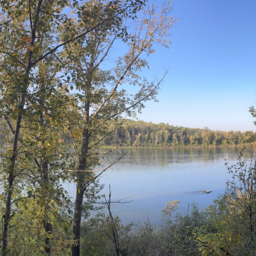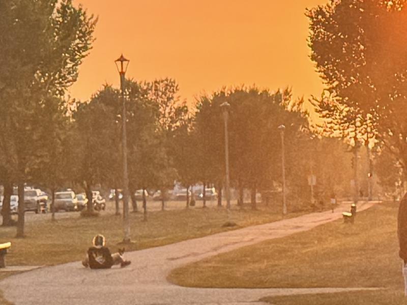 The sun was setting and I ran into an old coworker sitting on the ground talking pics of the sunset and her dog. If you squint and zoom…
