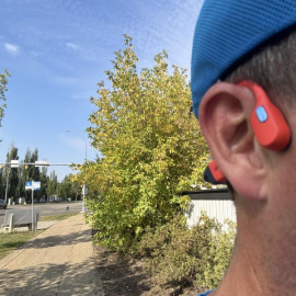 #headphones arrived in the mail yesterday and I got to try them out on run number fourteen of my streak. They are bone conduction headphones so they don’t block the ole ear holes and are supposed to be safer for situational awareness like traffic and heavy machinery.