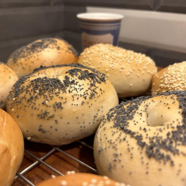 #bagels almost every morning last week, and on the way home the kid was lamenting how the grocery store version wasn't gonna compare. Sourdough to the rescue? Of course there was a recipe online and this stack just came hot out of the oven for a couple days worth of breakfast back in Edmonton.