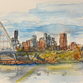 squwetchy Watercolour of the Walterdale Bridge, a newly built landmark in the river valley. This is part of a new urban sketchbook collection I've kicked off focusing on some of the great techniques I've been studying over the last year.