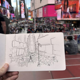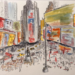 squwetchy Watercolour sketched on location painted at hotel. Times Square around lunchtime on a Saturday in November 2022. #newyork