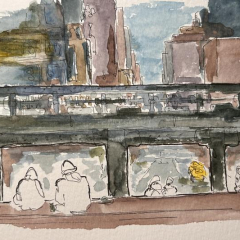 squwetchy Watercolour, inked on location. Walking the High Line and stopping for a view. #newyork