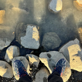 8r4dsfeets My shoes this month are a pair of old recycled runners from a few years ago, but they are good enough for long morning #walk through the dog park on a quiet Tuesday morning. It may be #spring but there is still ice on the river. #rivervalley