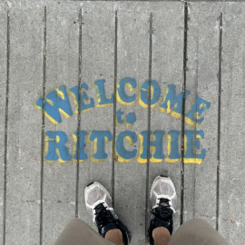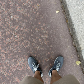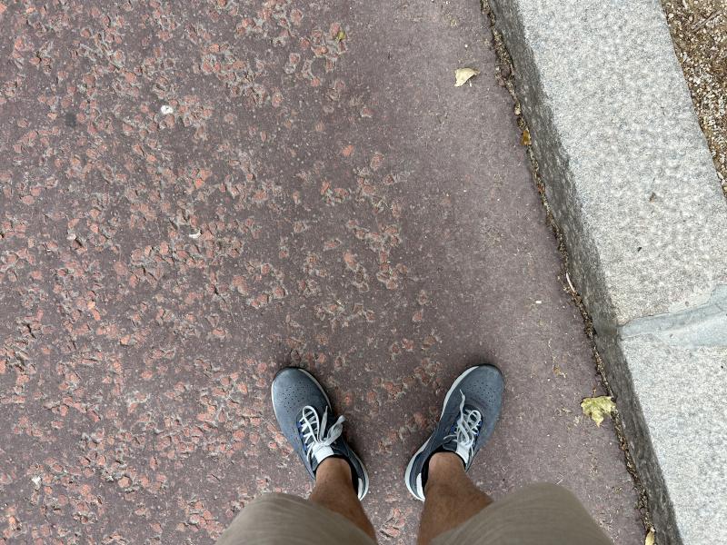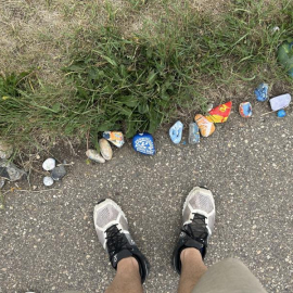 8r4dsfeets The rock snake swallowed our run club logo. I recall that at one point a couple years ago, back during COVID days, when this #rocksnake was one of those spontaneous community projects that appeared around town, she painted a few rocks with the logo I created ten years ago for our #running club. It's held up very well and is now about mid-point in the chain of rocks stretching about 50m down this asphalt path. #runcrew