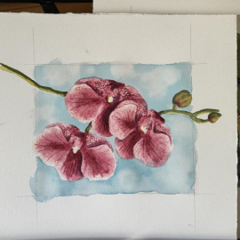 Week 6 of my painting class and we’re onto orchids Can you see the lovely purple gradients that make up every surface of these petals? There is so much going on here from a technique perspective that it’s no wonder we barely got through it all in our 3 hour class.