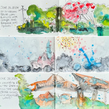 A theme park might literally be among the worst places in the world to try urban sketching.
