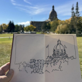 I went for a stroll #downtown via the #university with the goal of making some art. Success! Three new sketches.