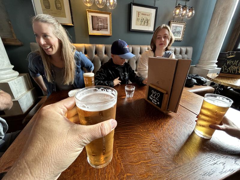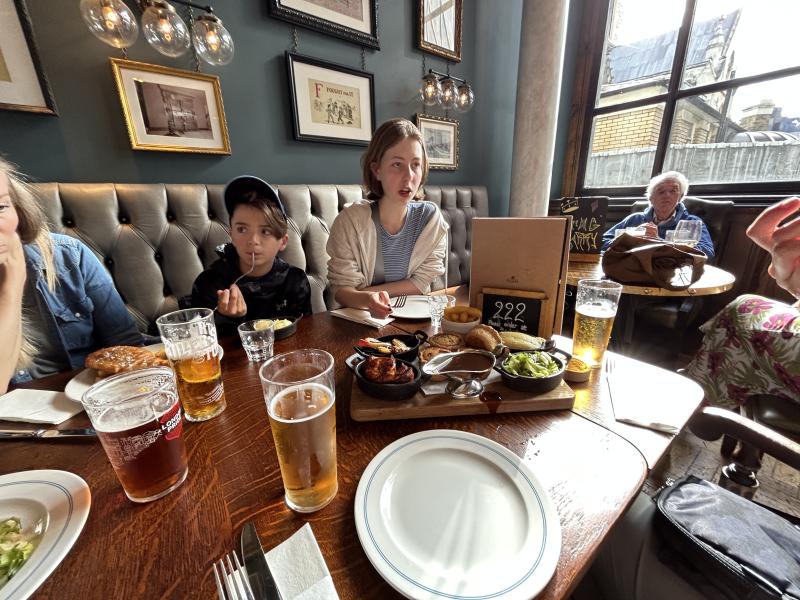 A Sunday evening feast at a classy pub by the river, apparently an old bank, but their pies were great and I ate a whole bowl of gravy somehow! #europe2023 #london