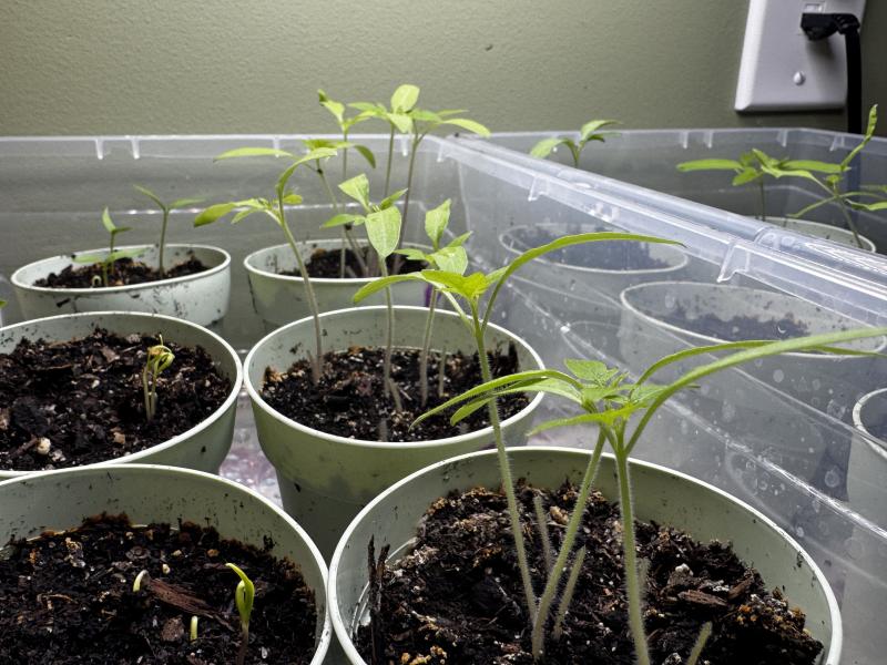 How does my #garden grow? Right now it mostly looks like a bunch of tomato seedlings basking in the lcd growlight glow.