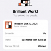 A double screenshot day on the puzzle app, first with a rare sub-20 second time on my crossword mini and second because I’ve pulled a 42 day win streak on the quartiles challenge. And yeah, the times on those screenshots are am.
